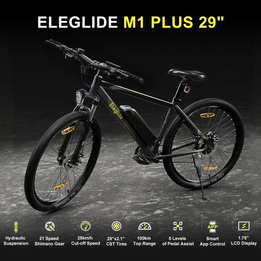 Das Eleglide M1 Plus ist mit einem leistungsstarken bürstenlosen 250-W-Motor ausgestattet, der ein Drehmoment von 45 Nm liefert und dem Fahrrad eine Geschwindigkeit von bis zu 25 km/h ermöglicht. Mit einem austauschbaren 12,5-Ah-Lithium-Ionen-Akku kann er im Unterstützungsmodus bis zu 100 km zurücklegen, was perfekt für lange Fahrten ist.