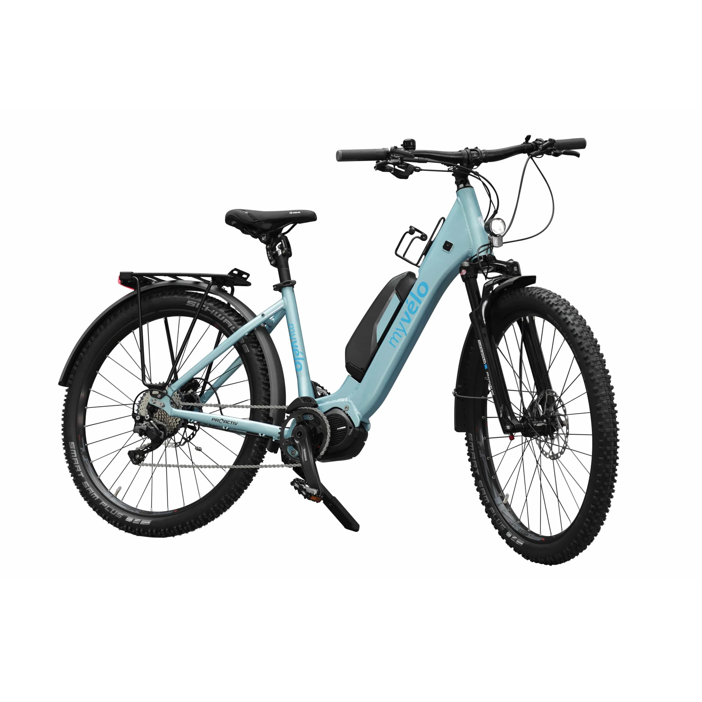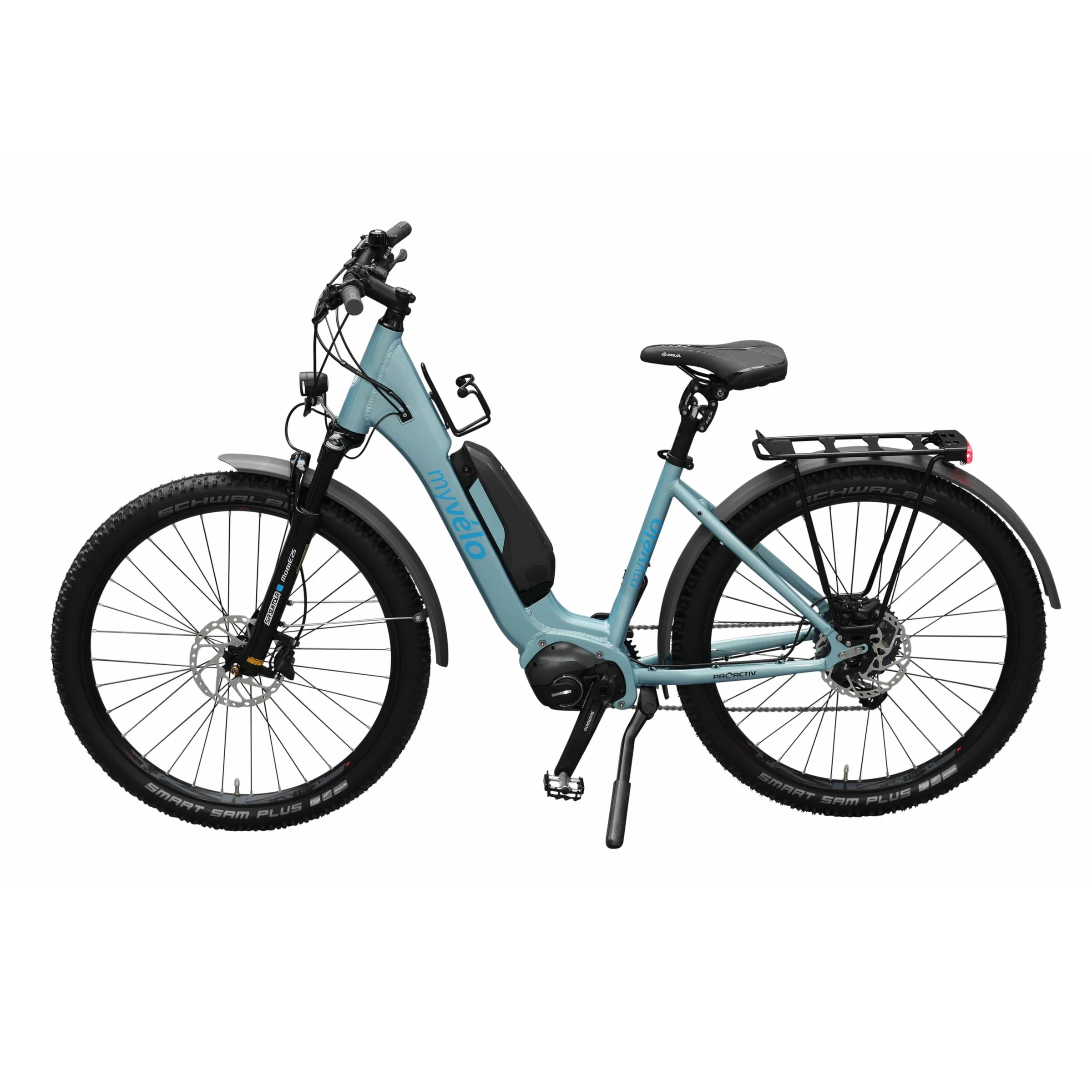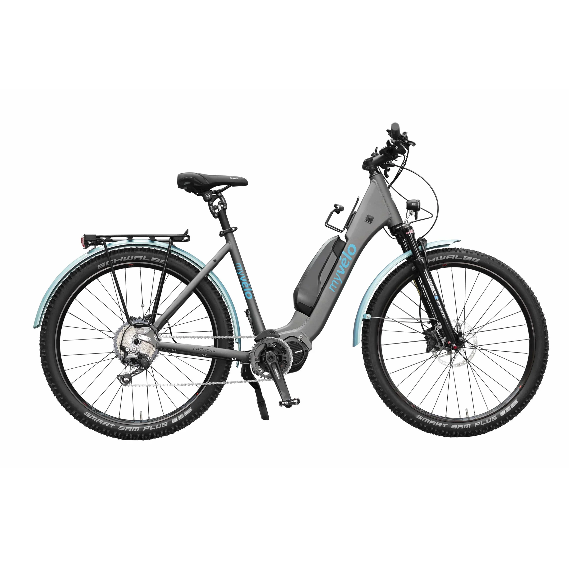 Die präzise Shimano SLX-11-Gangschaltung garantiert zuverlässige Schaltvorgänge auf all deinen Touren. Kombiniert mit der Suntour Mobie25 Luftfedergabel, die sich individuell anpassen lässt, wird so jede Fahrt zum reinsten Vergnügen. Wer keine Lust hat selber die Schaltung zu betätigen, haben wir natürlich ebenfalls Abhilfe. Das MYVELO Palermo E-SUV gibt es auch mit der Shimano Di2 Automatikschaltung. Die 29 Zoll großen Schwalbe Smart Sam Reifen glänzen mit ihren ausgezeichneten Allterrain-Eigenschaften, die in nahezu jedem Gelände ideale Traktion bieten, und zudem mit einem idealen Pannenschutz versehen sind. Ob Stadttour oder rasante Downhillpassage: Für deine Sicherheit sorgen die hydraulischen Deore-Scheibenbremsen von Shimano.